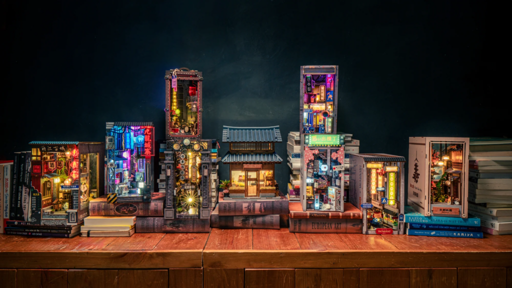 If she loves books and cozy spaces, a detailed wooden book nook kit like those from Anavrin makes a truly unique gift. These miniature illuminated scenes sit between books on a shelf, creating a magical display she builds herself. It’s part craft project, part decor piece, and completely charming once finished. Essentially, a gift of experience in the comfort of their home.