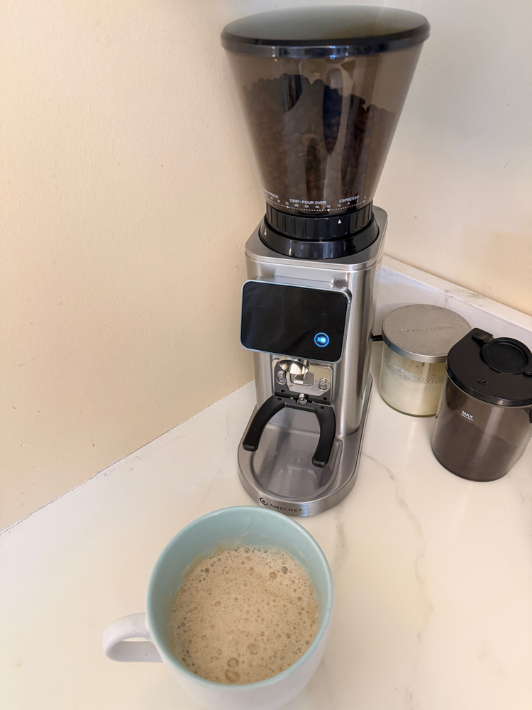 One of my favorite features is my new coffee grinder’s portafilter holder—and if you’re not familiar with a portafilter, it’s the handled basket that holds the coffee grounds in an espresso machine (the part you lock in to brew your coffee). With the AMZCHEF coffee grinder, I can grind beans directly into the portafilter instead of into a separate container first, making the whole process quicker and less messy. And who wouldn’t to make their mornings at least a little bit easier?