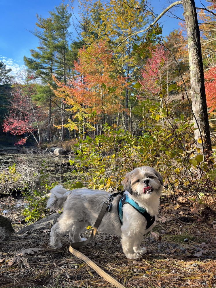 Since graduating college last year, both of my kids have relocated to the Boston area, and my husband and I visit them as often as we can. We drove up to see them one weekend in October and brought our sweet Shih Tzu pup with us. The fall colors were so beautiful, so we went on a few hikes together to enjoy the beautiful weather and scenery. I was recently gifted a Davincified paint by number kit. I chose a custom paint by number kit that would allow me to recreate a cute photo we captured during our get together of our Shih Tzu against the fantastic fall foliage during one of our hikes.