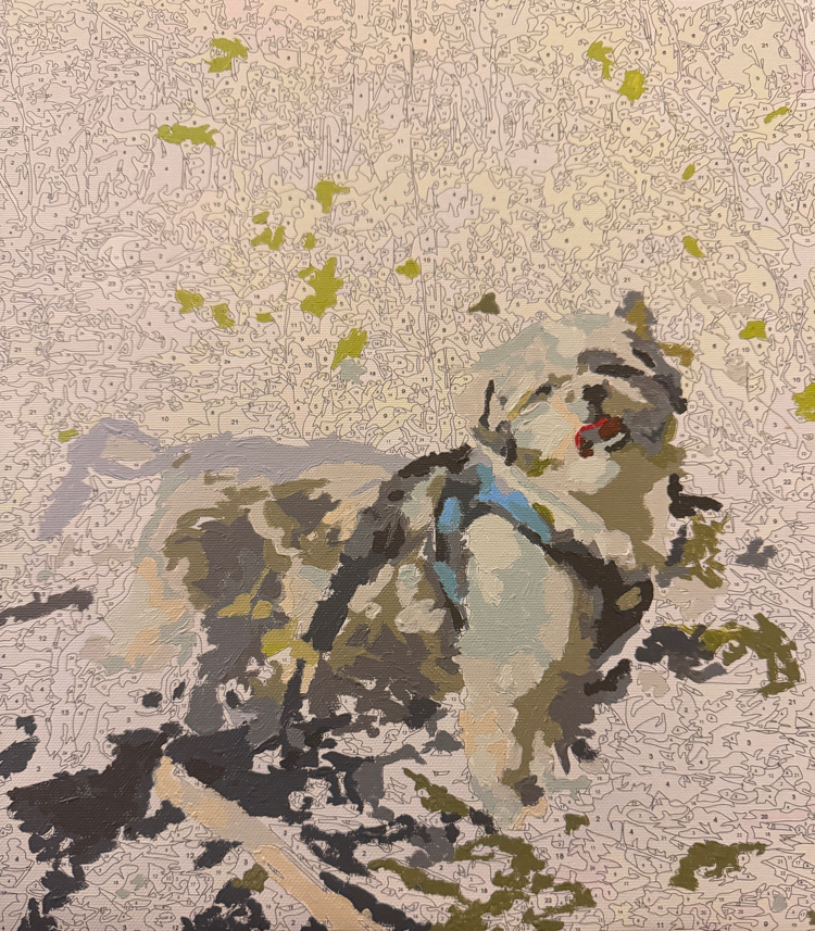 This design was more detailed than a previous paint-by-number kit I tried, which made it a great challenge. I think that’s because I accidentally chose a photo with a very difficult and busy pattern. In hindsight, a simpler portrait of my dog with a plain background or sky would have been a better starting point for me.