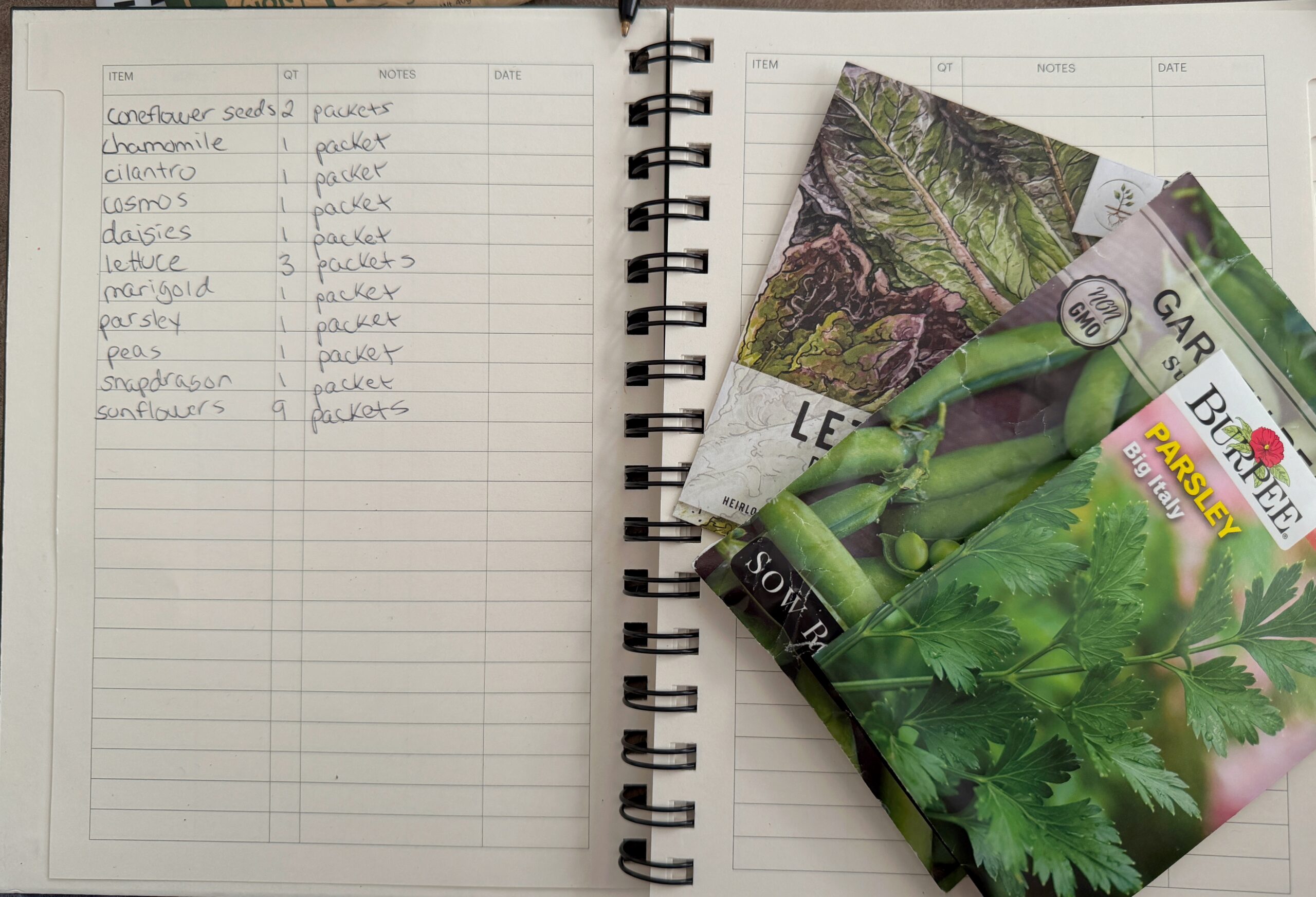 Last fall and into this year, I gathered more seeds than usual—everything from vegetables like lettuce, peas and parsley to flowers like coneflowers, daisies and marigolds—there’s a lot to keep track of! Thank goodness that my notebooks include a section for organizing my garden inventory. Last weekend, I logged all the seeds I plan to grow this season, which should help me stay on track and get everything planted on time.